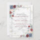 Crie o convite perfeito para o casamento com este tradicional azul empoeirado, burgundy marsala e design floral cor-de-rosa e verde-claro, com fundo de mármore falso carrera, tipografia escrita com letra de mão e pó de ouro falso. Copyright Elegant Invites, todos os direitos reservados.