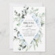 Rosas Florais Dusty Blue e Eucalyptus Botanical Greenery Watercolor Primavera ou Convites de chá de panela de Casamento de Verão - inclui uma bela e elegante tipografia escrita com flores botânicas tropicais modernas e verde para a celebração especial do Dia de Casamento.
