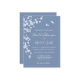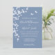 This dusty blue floral wedding invitation features cherry blossom branches on a dusty blue background. With bride and groom names in an elegant handwritten script.