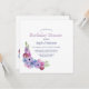 Um elegante convite de festas de janto de aniversário floral azul e rosa.