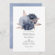 Rosa ouro elegante, marinho e convite para casamento de flores azuis empoeiradas personalizável para suas especificidades de evento. Ideal para qualquer tema ou casamento de jardim. O código QR no verso direciona para o seu local de casamento onde o pessoas pode aprender mais e rsvp.