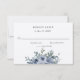 A beautiful dusty blue floral wedding rsvp with watercolor flowers, grey text along with a solid white and dusty blue accent.