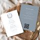 Crie uma impressão de eterno com um convite formal de casamento monograma da crista floral com um código QR personalizado para fácil acesso de convidado aos detalhes do evento. Este convite elegante combina designs florais clássicos com uma crista personalizada, acrescentando um toque sofisticado ao seu tema de casamento. O código QR simplifica RSVPs, direções e outras informações importantes, oferecendo conveniência em um formato moderno. Perfeito para casamentos formais, este convite combina tradição e tecnologia, assegurando que seu dia especial seja bonito e organizado.