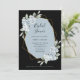 Este simples e elegante chá de panela de casamento apresenta folhas românticas de cor aquática de eucalipto e rosas azuis empoeirados e flores de hydrangea em um falso quadro geométrico dourado e um fundo negro e escuro.