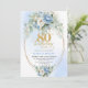 Convite Dusty Blue Floral Eucalyptus Gold 80th Birthday