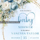 Convite Dusty Blue Floral Eucalyptus Gold Script Baby Show