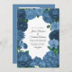 Convite Dusty Blue Floral Photo and QR Code Wedding