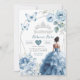 Convite Dusty Blue Floral Princesa Mexicana Quinceañera