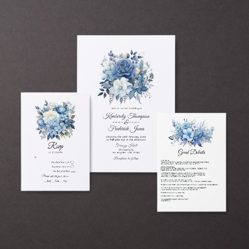 Concurso de casamento floral azul com tipografia elegante personalizável para o seu evento específico.