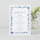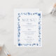 Convite Dusty Blue Floral Wedding Menu Card