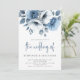 Dusty Blue Florals Script QR Code Foto Overlay Casamento. Disponível digitalmente e impresso. Personalize facilmente o texto. Basta substituir o URL de exemplo no campo de modelo por seu próprio URL e seu código QR será criado automaticamente para a conveniência dos convidados de responder on-line.