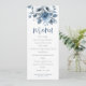 Dusty Blue Florals Script Menu Imprimível de Casamento de Casamento. Disponível digitalmente e impresso. Com um script de conjunto informal para Menu e personalize facilmente o resto do texto. As cores da fonte podem ser alteradas através do menu de edição. Você também pode alterar as cores de fundo se desejar.