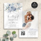Convite Dusty Blue Florals Sobreposição de Foto Código QR
