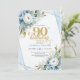 Convite Dusty blue gold script frame modern 90th birthday