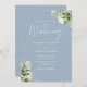 Convite Dusty Blue Greenery Floral Código QR Casamento