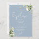 Convite Dusty Blue Greenery Monograma Floral Batismo