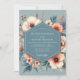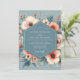 Experience a romantic and artistic affair with this elegant design. A stunning arrangement of painted anemones and poppies in soft peach, coral, and cream hues beautifully contrasts with the serene dusty blue background. This vintage-inspired botanical illustration sets a sophisticated and dreamy tone for your special day.