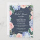 Convite de festas de chá moderno, chá de panela, com hidrangas azuis claras/poeirentas de cor azul-d'água, com cor pastel rosa, pincel, rosas brancas, peonias, folhas de eucalipto, ramos e folhagem. Tons românticos, suaves e sonhentos, primavera, designs florais de cor d'água de verão para combinar com o seu casamento temático. Por favor, encontre mais designs e variações na minha loja de "blisswedingpaperie". E fique à vontade para me contactar para mais personalizações ou itens correspondentes.