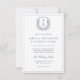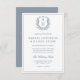 Convite Dusty Blue Leafy Crest Monograma Casamento Código