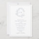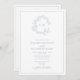 Convite Dusty Blue Leafy Crest Monograma Detalhes Casament