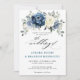 Convite para o casamento floral azul empoeirado, com buquê elegante de azul marinho, azul real, branco, ouro, marfim de champanhe, rosa de cor esbranquiçada, botões de flor ranunculus e folhas de eucalipto verde-sábio e buquê de cor d'água elegante. Entre em contato comigo para obter ajuda sobre a personalização ou se você precisar de outro produto com este design.