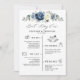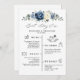 Programa de casamentos florais azuis empobrecidos com buquê elegante de azul marinho, azul real, branco, ouro, marfim de champanhe, rosa de cor esbranquiçada, botões de flores ranúculus e folhas de eucalipto verde-sábio e buquê de aquarela elegante. Entre em contato comigo para obter ajuda sobre a personalização ou se você precisar de outro produto com este design.