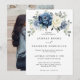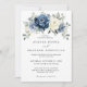 Convite para o casamento floral azul empoeirado, com buquê elegante de azul marinho, azul real, branco, ouro, marfim de champanhe, rosa de cor esbranquiçada, botões de flor ranunculus e folhas de eucalipto verde-sábio e buquê de cor d'água elegante. Entre em contato comigo para obter ajuda sobre a personalização ou se você precisar de outro produto com este design.