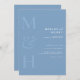 Convite Dusty Blue Monogram QR Code All In One Wedding