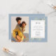 Apresentando delicadas folhas de cor aquosa em fundo azul empoeirado, este convite botânico para casamento pode ser personalizado com suas iniciais de monograma, foto especial e detalhes especiais do dia do casamento. Projetado por Thisnotme©