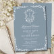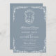 Dusty Blue Monograma Floral Vintage Crest Ensaio de Casamento Cartão de Convite para Janto. Celebre o seu dia especial com esta elegante e bela carta de convite para casamento para embelezar a sua ocasião especial. Todos os textos estão pré-organizados para que você personalize fácil e rapidamente com seus próprios detalhes. Se você precisar de mais itens de personalização ou de correspondência, envie um e-mail para alldaybreakfastzazzle@gmail.com - gostaríamos de ajudar.