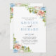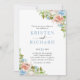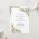 Este elegante convite para o casamento mostra um verde-aquarela floral pintado à mão em azul empoeirado e pêssego.