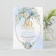 Convite Dusty Blue Peony Floral Gold Elegant 80th Invite