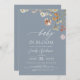 Convite Dusty Blue QR Code Wildflower Baby in Bloom