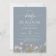 Convite Dusty Blue QR Code Wildflower Baby in Bloom