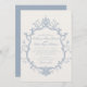 This is a dusty blue wedding inviation featuring a rococo style floral frame and classic serif fonts. Most wording can be edited to fit your plans, including names, date, and location. The design has a calm, romantic feel and works well with a variety of wedding styles.