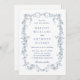 Classic dusty blue floral wedding invitation with a floral crest and monograms on the back. For more advanced customization of this design, please click the DESIGN TOOL BUTTON above!