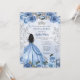 Convite Dusty Blue Silver Princesa Floral Quinceañera