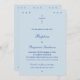 Personalize this Christian baptism invitation to celebrate your little one’s special, faith-filled day. The design features a cross in elegant soft blue pearl graphics and delicate pearl graphic details against a dusty blue background, creating a timeless, minimalist aesthetic. This christening invite combines simple baby dedication sentiments with a vintage look, enhanced by a beautiful mix of typography and script fonts. Perfect for those seeking a refined, classic, and heartfelt way to announce your baby’s baptism. This minimalist Christian Baptism Invitation is also ideal for children, teens and adults. Be sure to see the collection for matching items to complete your coordinated look.