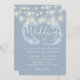 Um convite de casamento azul empoeirado com luzes bonito de cordas e uma delicada terra floral rústica desenhada à mão de folhagem de folha botânica com tipografia de na moda. Personalize com sua informação especial do dia do casamento. Projetado por Thisnotme©