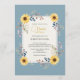 Convite Dusty Blue Sunflower Bridal Shower Gold Frame