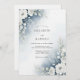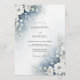This design features a delicate wash of dusty blue watercolor artfully blended with an array of white blooms and soft green foliage. A romantic and ethereal mood is evoked, perfect for a serene union. The painterly style creates a dreamy, sophisticated aesthetic.