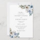 Um convite de casamento floral azul empoeirado.