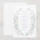 Os detalhes do evento são delicados e elegantes caixilhos de flor silvestre de aquarela. Paletas de pastel de amarelo macio, branco esbranquiçado, verde-sábio, azul empoeirado e verde botânico, convites de chá de panela florais de Excelente e espumantes para o partido moderno rústico, festas de jardim boho-country em primavera e verão.