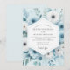 Experience a serene and romantic atmosphere with this elegant artistic design. The composition features a beautiful arrangement of painterly white anemones and dusty blue watercolor blossoms. Soft, muted foliage in shades of blue and teal completes this dreamy and ethereal floral pattern for your special day.