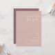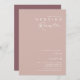Este convite de casamento Rose e Roxo Dusty Boho é perfeito para o seu casamento colorido rústico boho. Seu design moderno simples e único, acompanhado por uma fonte minimalista contemporânea e uma paleta de cores rosa empoeirado e roxo, dá a este produto um charme clássico e boêmio. Mantenha-o como está ou personalize-o com arte ou gráficos de sua escolha. Você também pode olhar para outros produtos dentro desta coleção para unir todo o seu casamento!