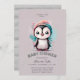 Convite Dusty Lilac Cute Penguin Winter Girl Chá de fralda