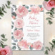 Estes convites para chuveiros de bebês apresentam um design floral de aquarela moderno com flores rosa poeirentas e folhagem de eucalipto. Personalize o texto do convite com o seu próprio texto. Itens correspondentes de chá de fraldas também disponíveis.