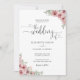 Este elegante convite de casamento floral de rosa poeirento pode ser personalizado com seus detalhes de celebração em tipografia branca e negra e sua foto especial no verso. Projetado por Thisnotme©