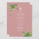 Este elegante convite batizante de batismo cor-de-rosa botânico poeirento e eucalipto verde pode ser personalizado com sua informação em tipografia quic com iniciais de monograma no reverso. Projetado por Thisnotme©