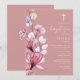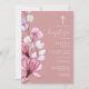 Este convite de batizado floral transparente em rosa poeirado elegante pode ser personalizado com suas informações em tipografia chic com seu monograma no verso. Projetado por Thisisnotme©